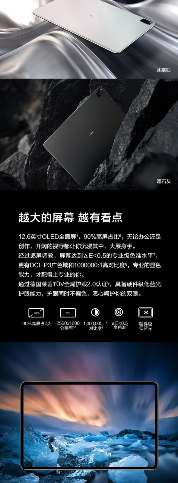 華為HUAWEI MatePad Pro 12.6英寸鴻蒙HarmonyOS系統(tǒng)OLED屏幕平板電腦學(xué)習(xí)8GB12GB內(nèi)存 前黑后耀石灰