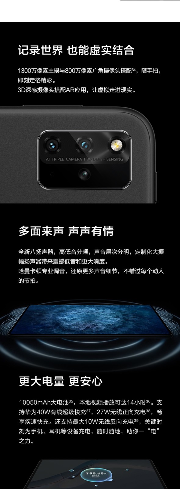 后置攝像頭像素 1300萬像素主攝+800萬像素廣角+3D深感攝像頭