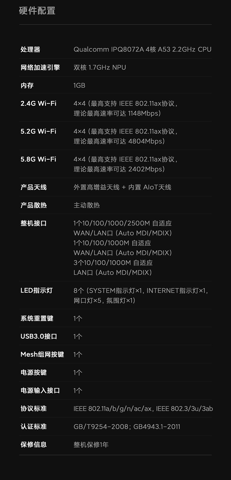 規(guī)格參數(shù) 其他屬性 網(wǎng)絡(luò)標(biāo)準(zhǔn) wifi6 有線傳輸率 千兆端口 無線傳輸速率 9000M 無線網(wǎng)絡(luò)支持頻率 2.4G&5G 適用對象 大戶型 專業(yè)游戲路由 基本參數(shù) 顏色分類 黑色 配置參數(shù) 是否無線 是 無線傳輸速度 5400M
