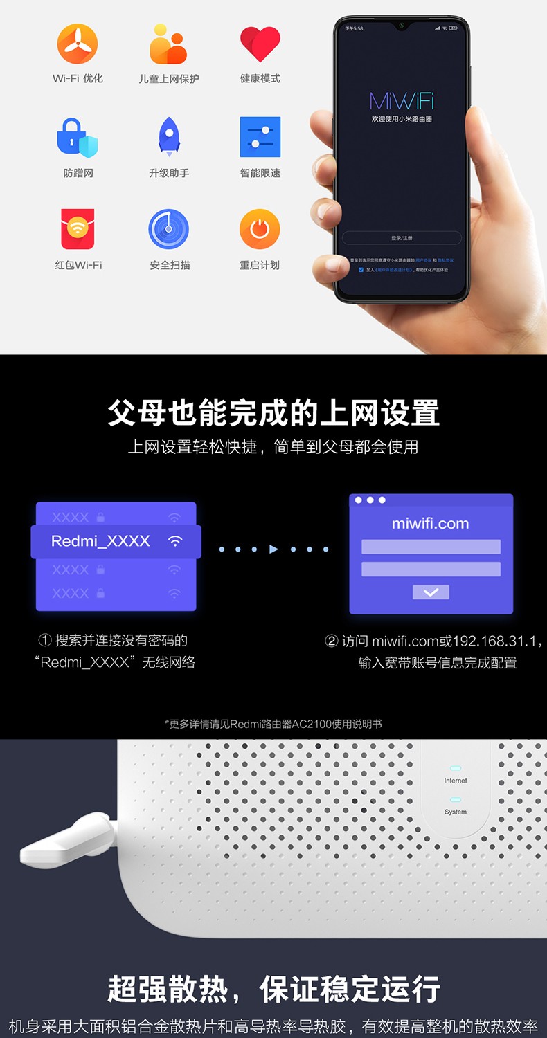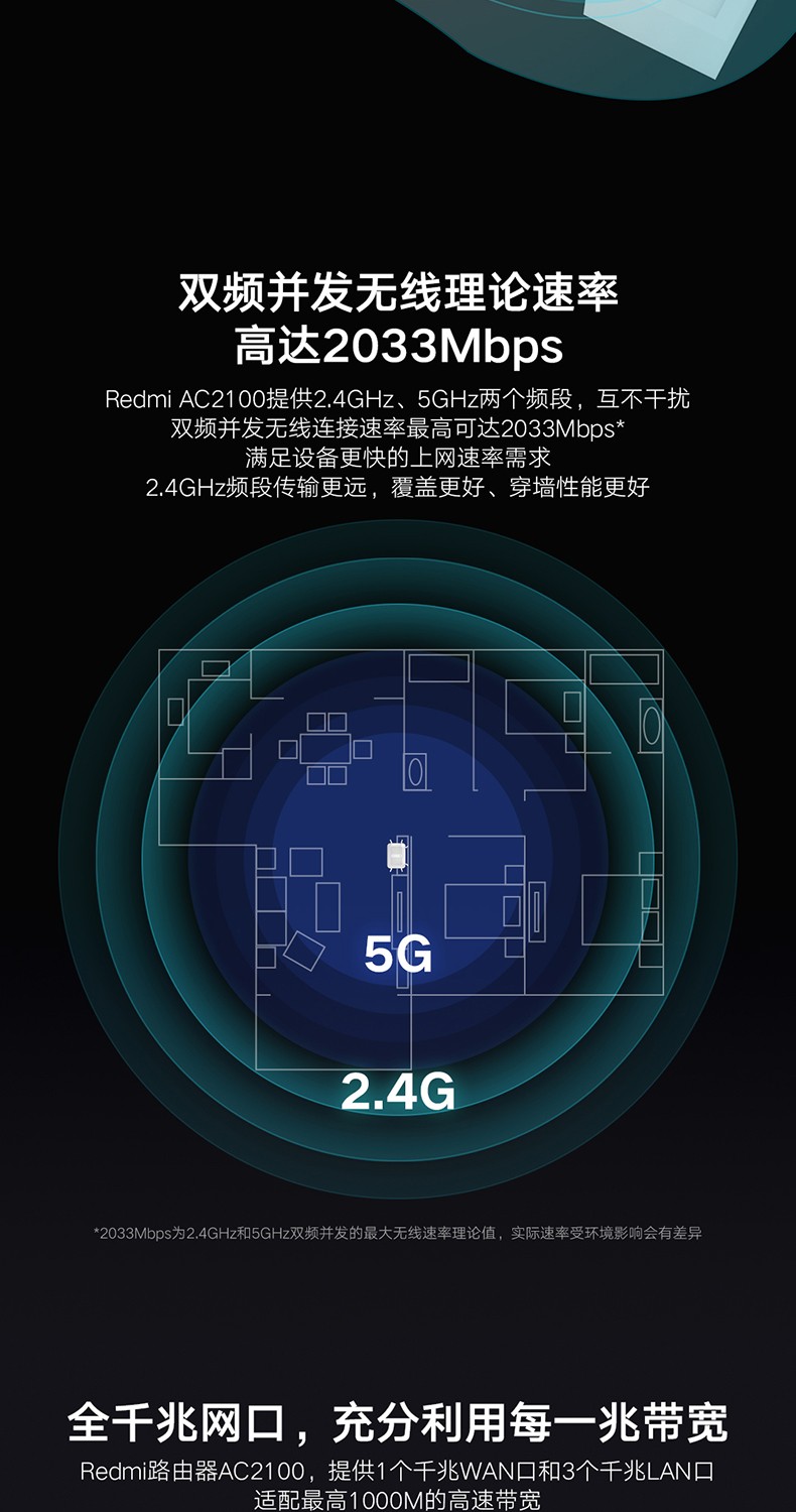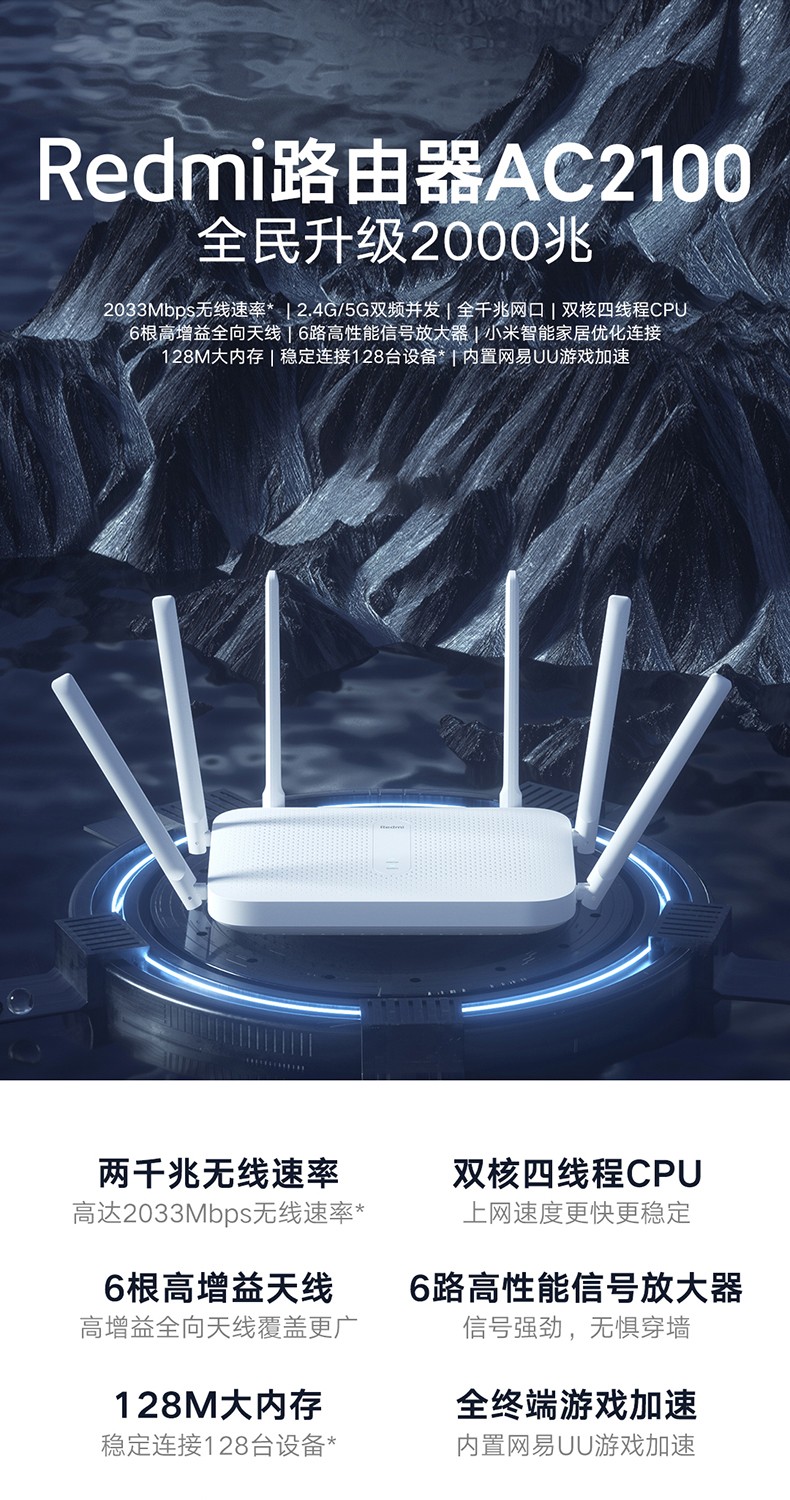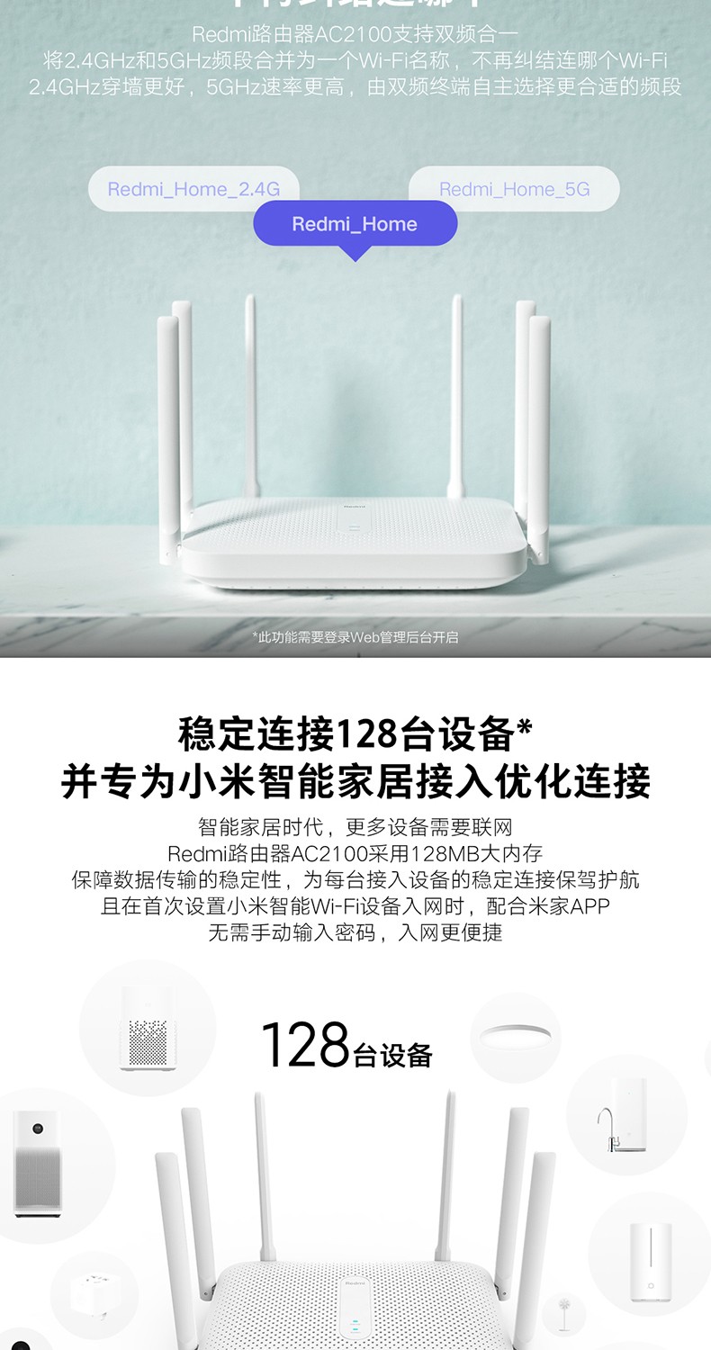 當(dāng)前位置: 首頁 > 網(wǎng)絡(luò)設(shè)備 > 路由器 > 小米Redmi路由器AC2100家用千兆端口5G雙頻2000M無線速率wifi游戲加速會員高速大戶型