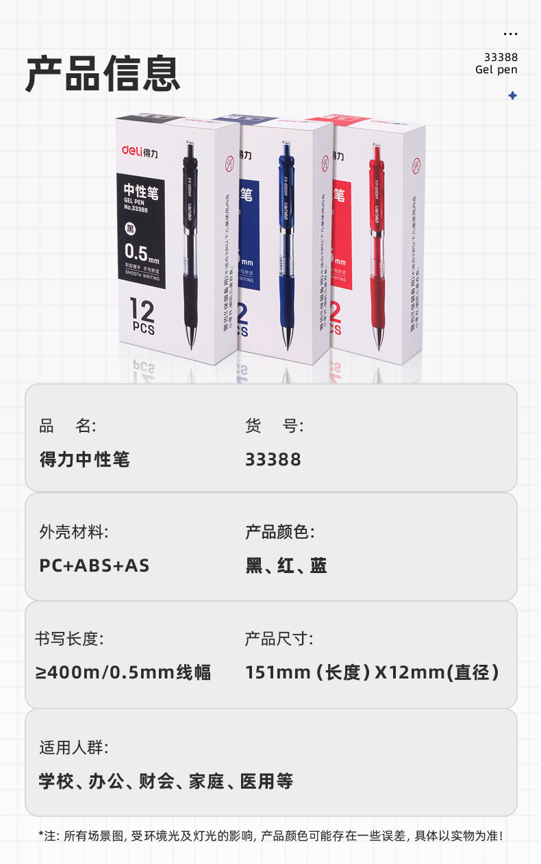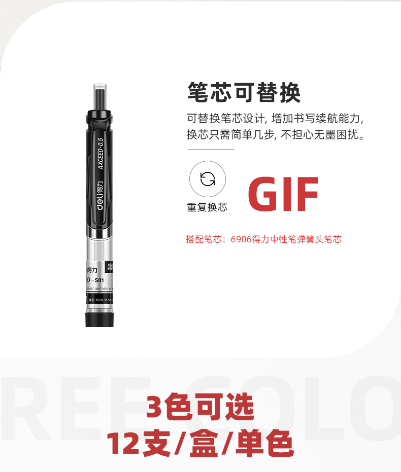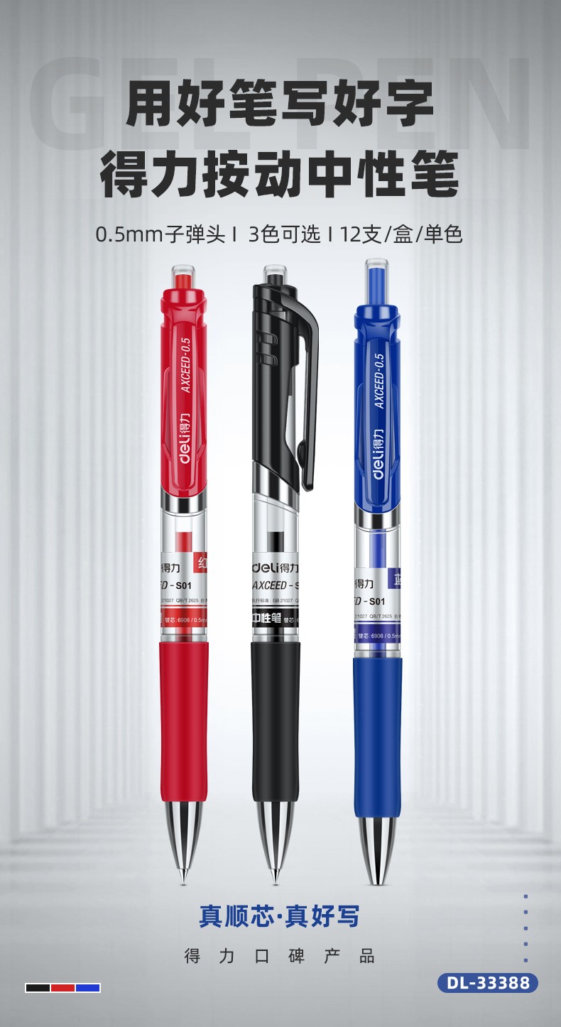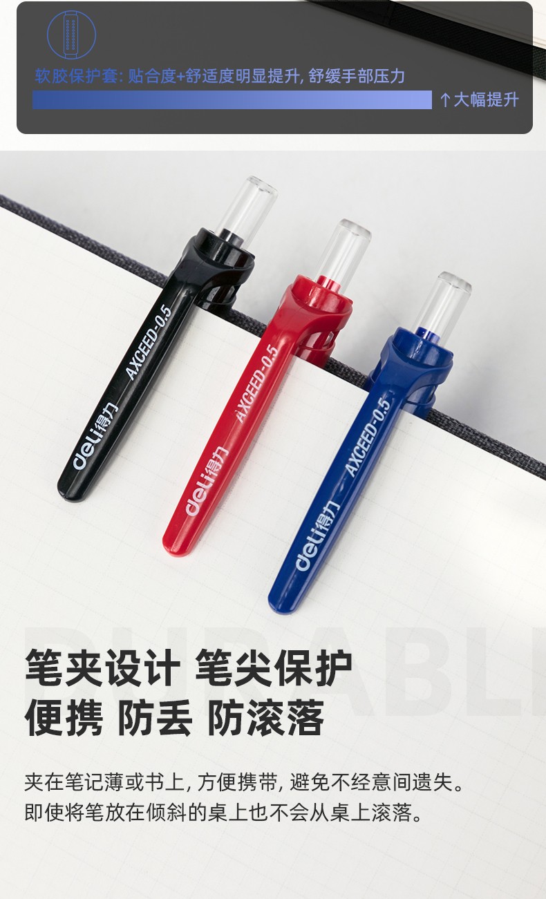 5支混裝-得力按動(dòng)筆中性筆水筆學(xué)生用考試按壓式子彈頭碳素黑色水性簽字筆芯05mm圓珠筆藍(lán)黑紅筆教師辦公文具用品