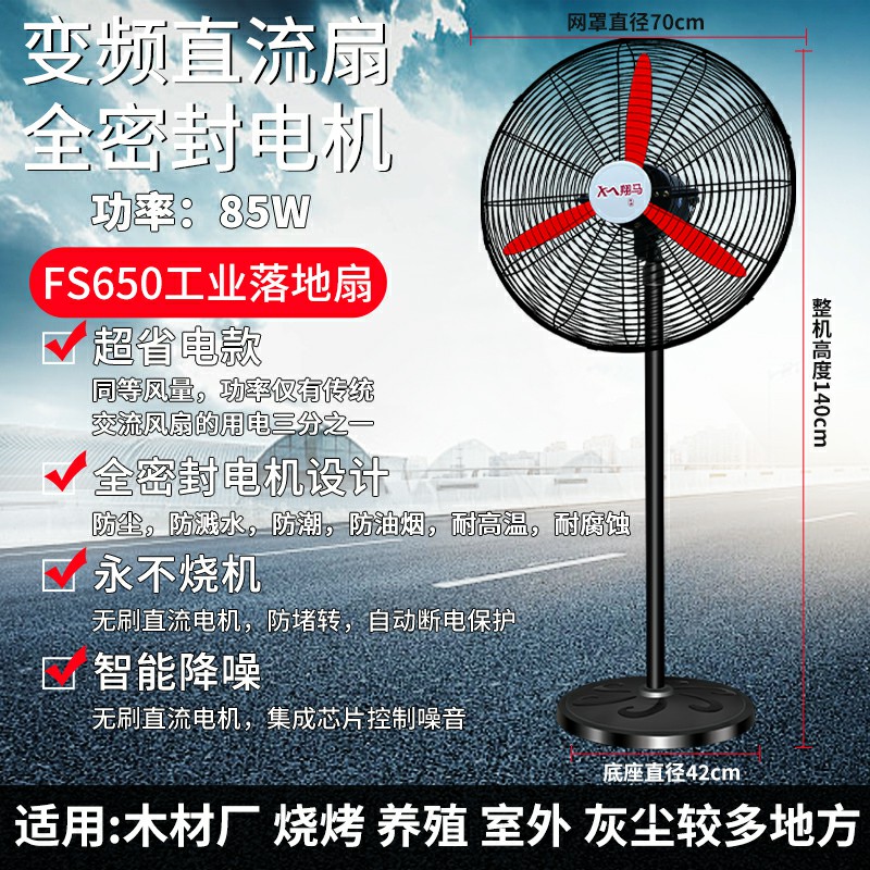 fs650-落地扇-85W直流扇工業(yè)電風扇強力落地扇大風量牛角扇商用機械大功率車間工廠壁掛扇