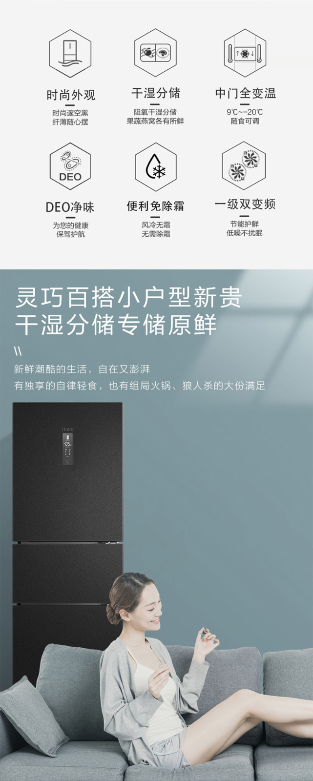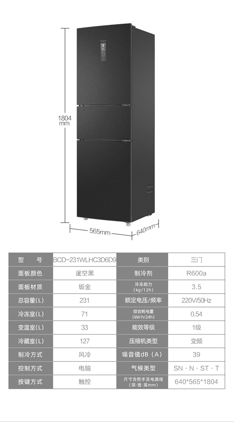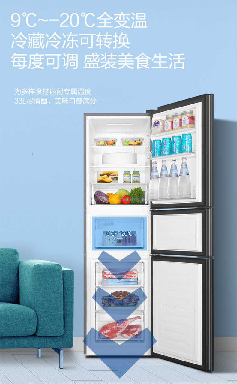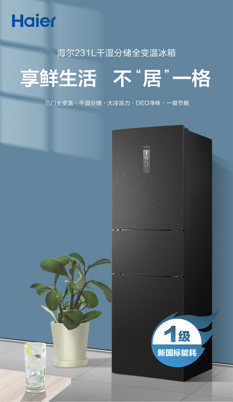 海爾231L三門雙變頻一級(jí)節(jié)能風(fēng)冷無(wú)霜小型家用租房冰箱海爾231L三門雙變頻一級(jí)節(jié)能風(fēng)冷無(wú)霜小型家用租房冰箱