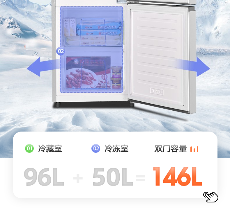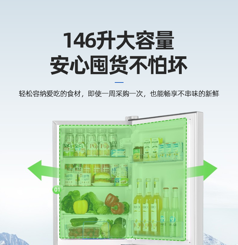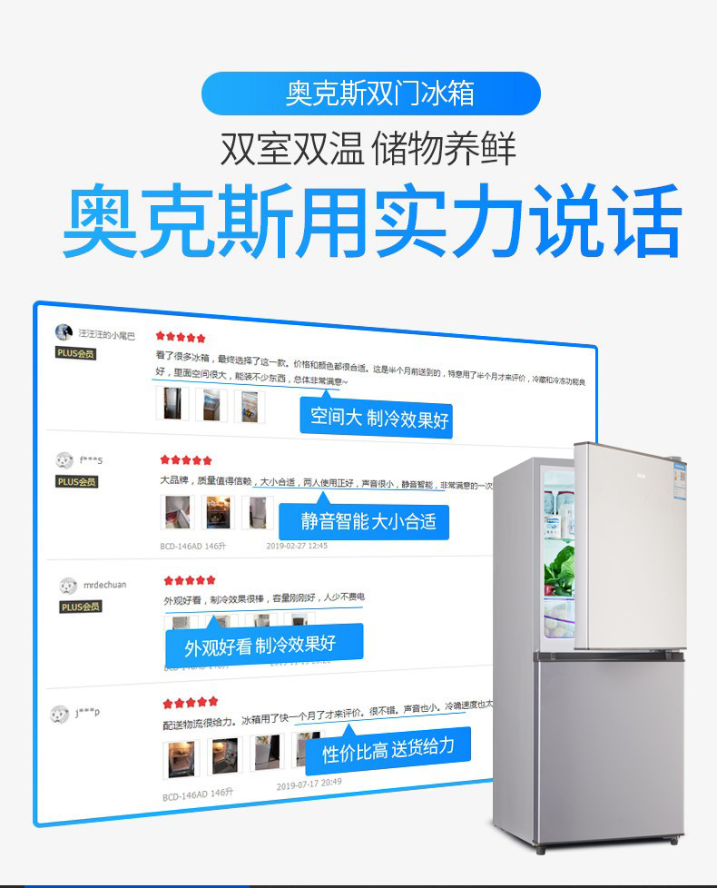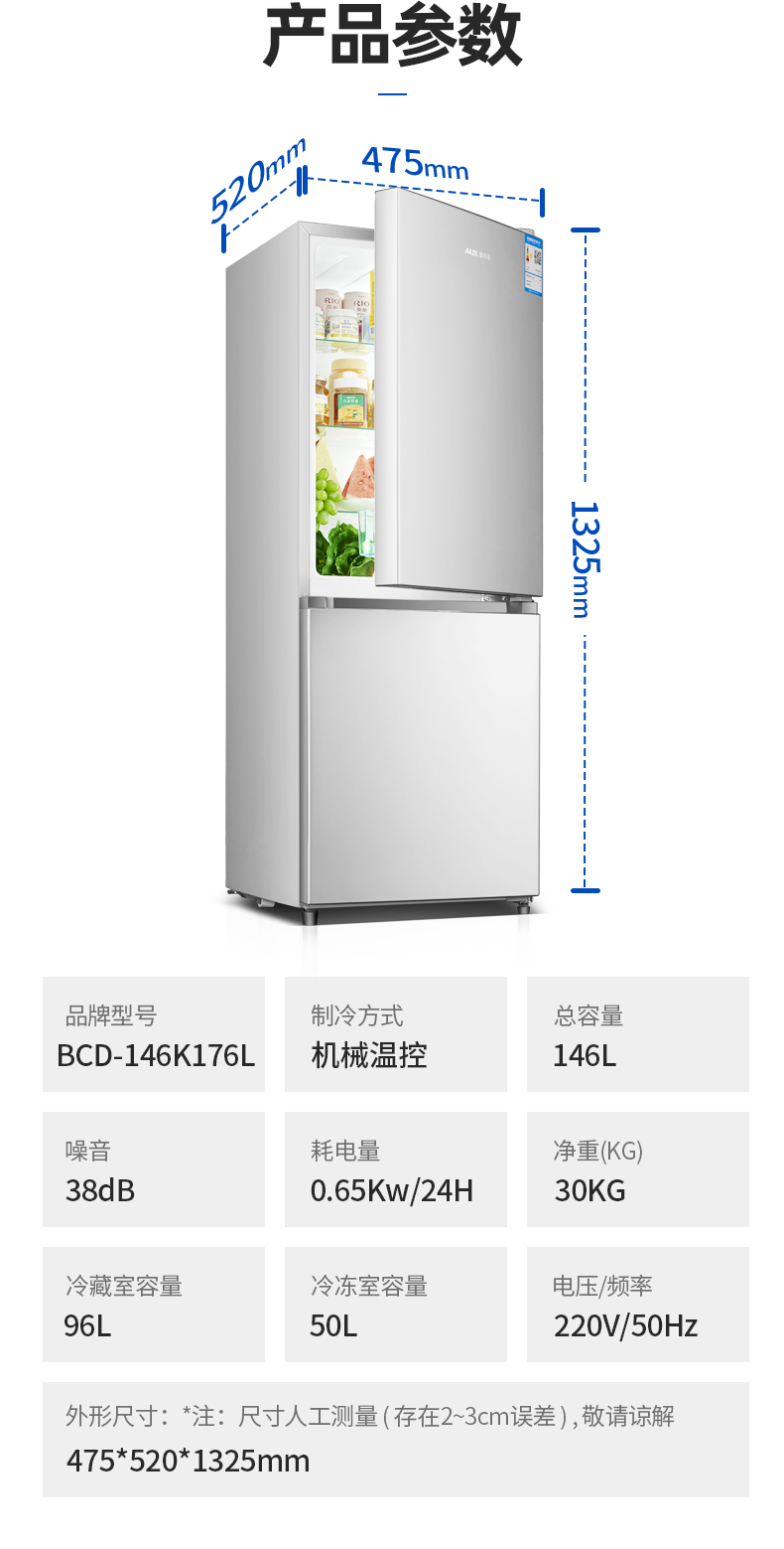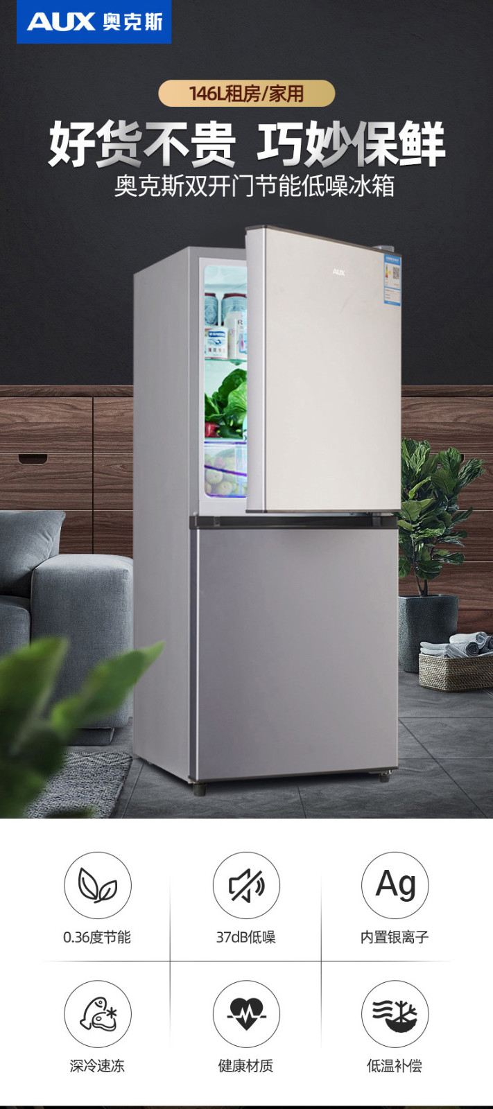 146P-176L-奧克斯146/182L雙開門冰箱小型家用電冰箱雙門大容量節(jié)能宿舍租房