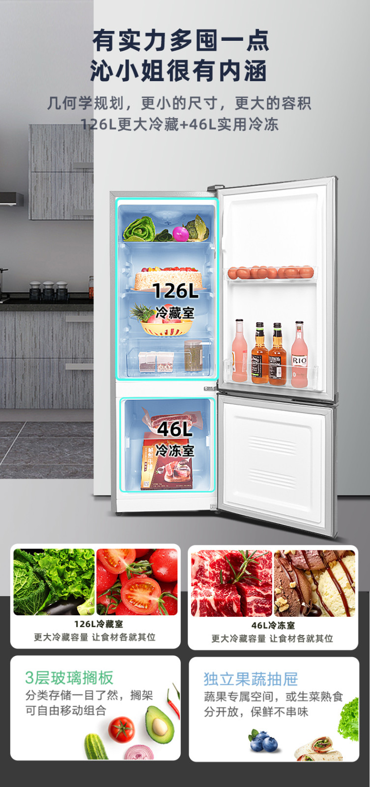康佳172升雙門冰箱家用節(jié)能兩門小冰箱雙開門冷藏冷凍小型電冰箱