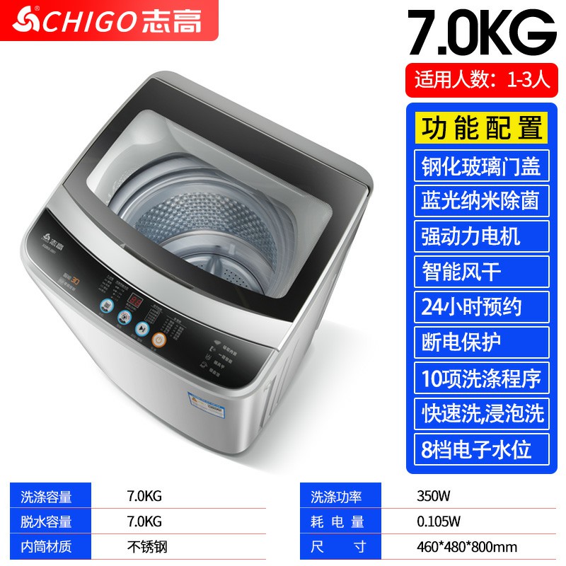 7.0kg-志高7.5KG/8.5洗衣機全自動家用小型宿舍嬰兒童迷你烘干洗脫一體