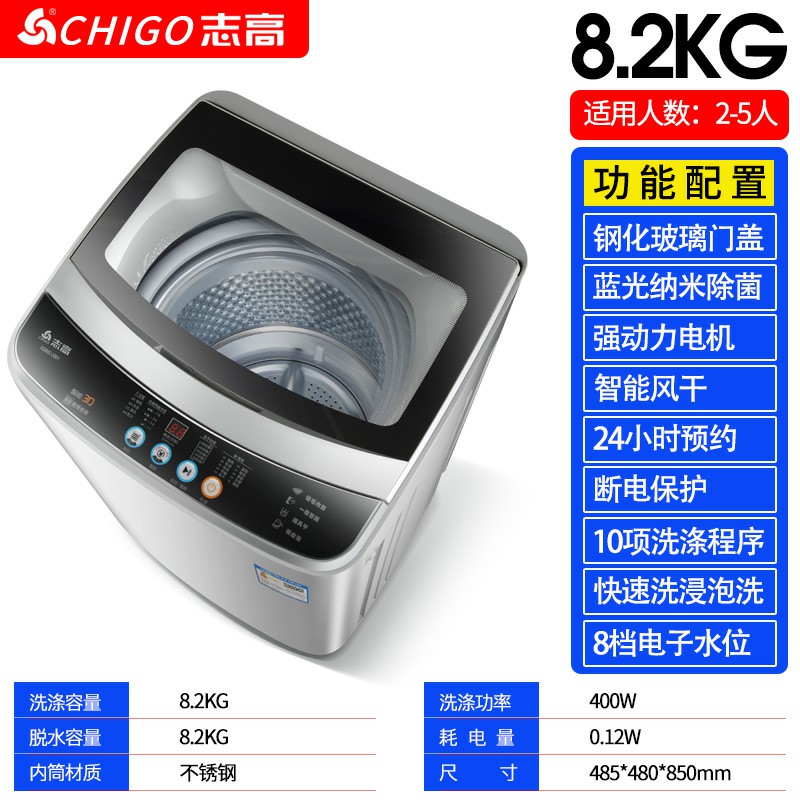 8.2kg-志高7.5KG/8.5洗衣機(jī)全自動家用小型宿舍嬰兒童迷你烘干洗脫一體