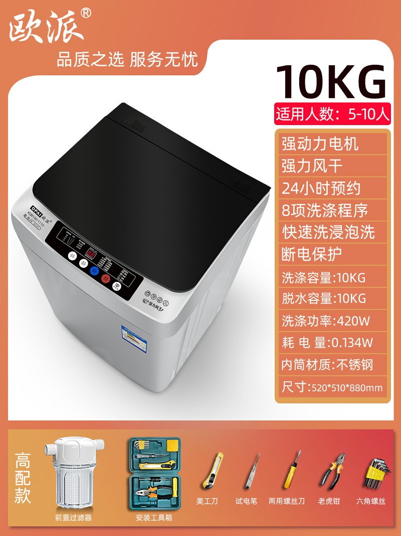 10kg-高配工具款-歐派洗衣機(jī)全自動波輪10公斤租房家用小型迷你嬰兒烘干脫水一體機(jī)