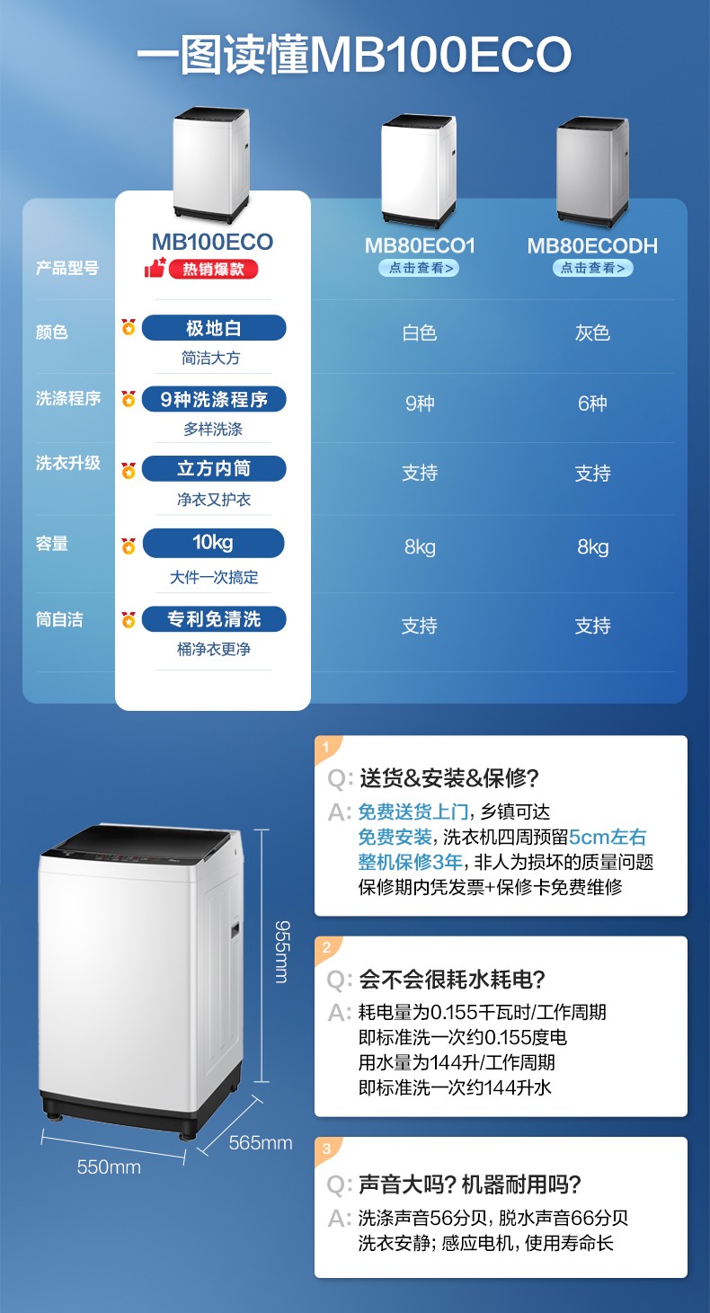 [隨心洗]美的官方旗艦10kg全自動(dòng)大容量家用洗脫一體波輪洗衣機(jī)